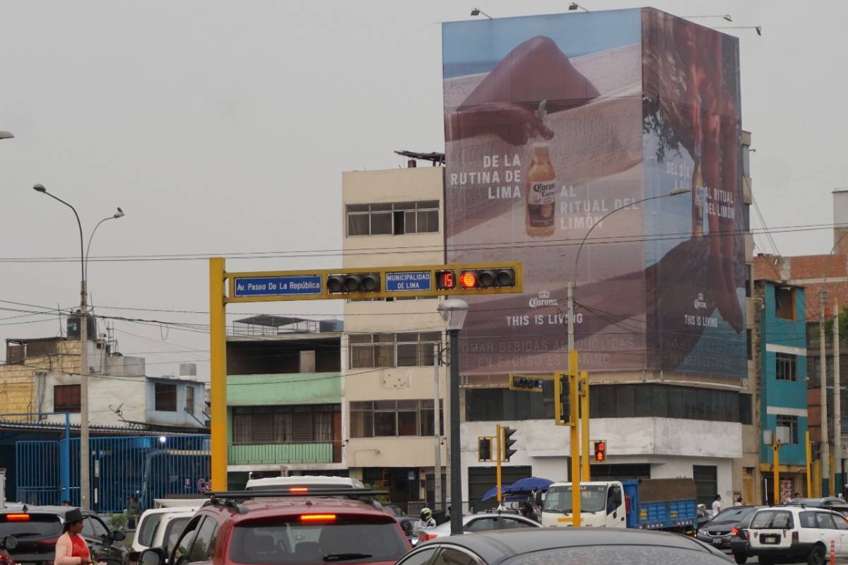 Lona de 372 m² con visibilidad de larga distancia en una de las rutas más concurridas del centro de Lima.